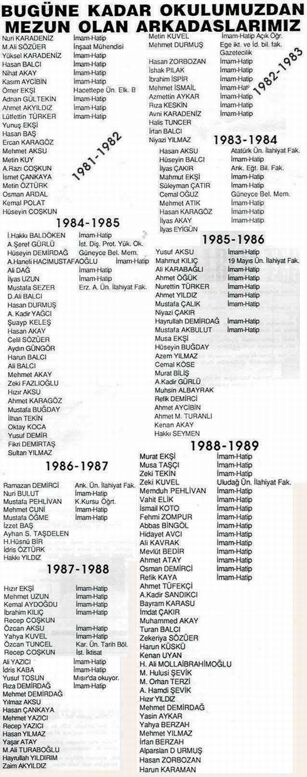 İKİZDERE İMAM HATİP LİSESİ 1989-1990 MEZUNLARI YILLIĞI